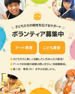 アートクラスやこども食堂にて子どもたちのサポートをはじめ、準備や片付けなどのサポートをしていただけると大変助かります!