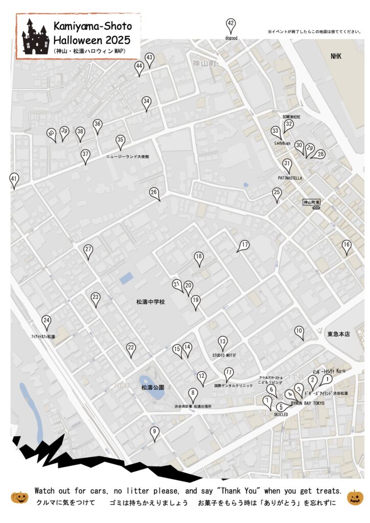 毎年大勢のお子さまが仮装して松濤エリアを練り歩き「Trick or Treat!」と盛り上がるイベントです。