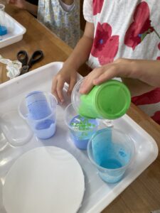 絵の具を流して描く「フルイドアート」は、偶然が生み出す美しさを楽しめる抽象アート。色の流れや重なりを体験しながら、アートの自由さと楽しさを感じましょう。
